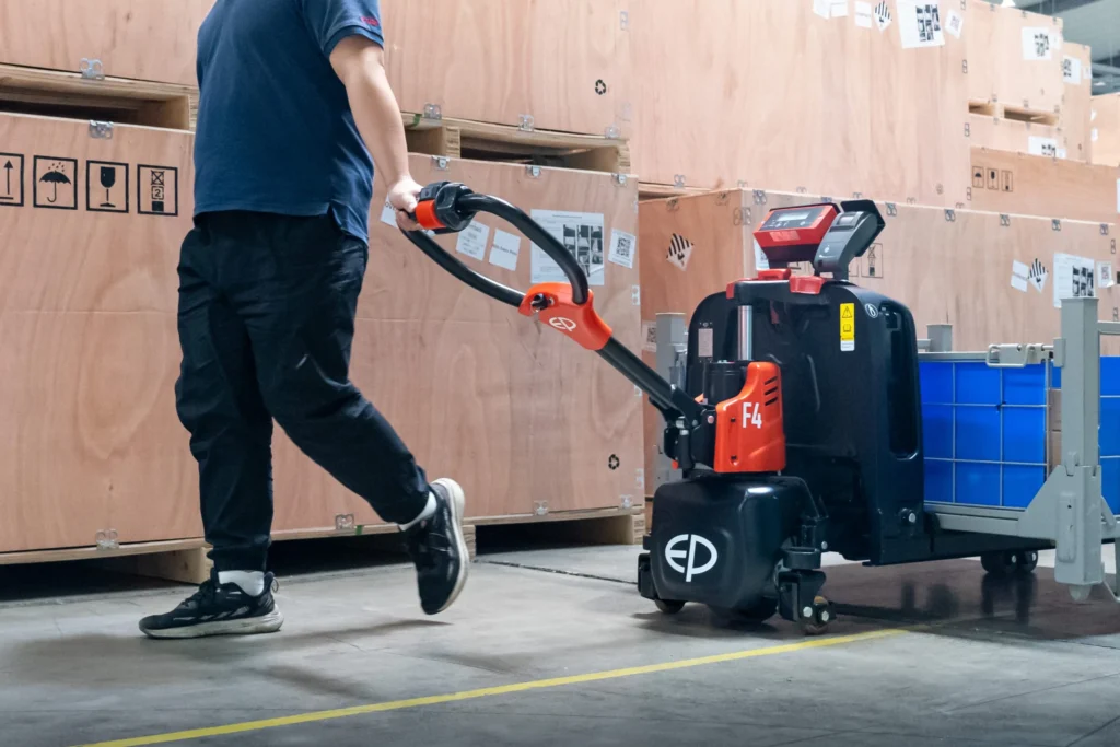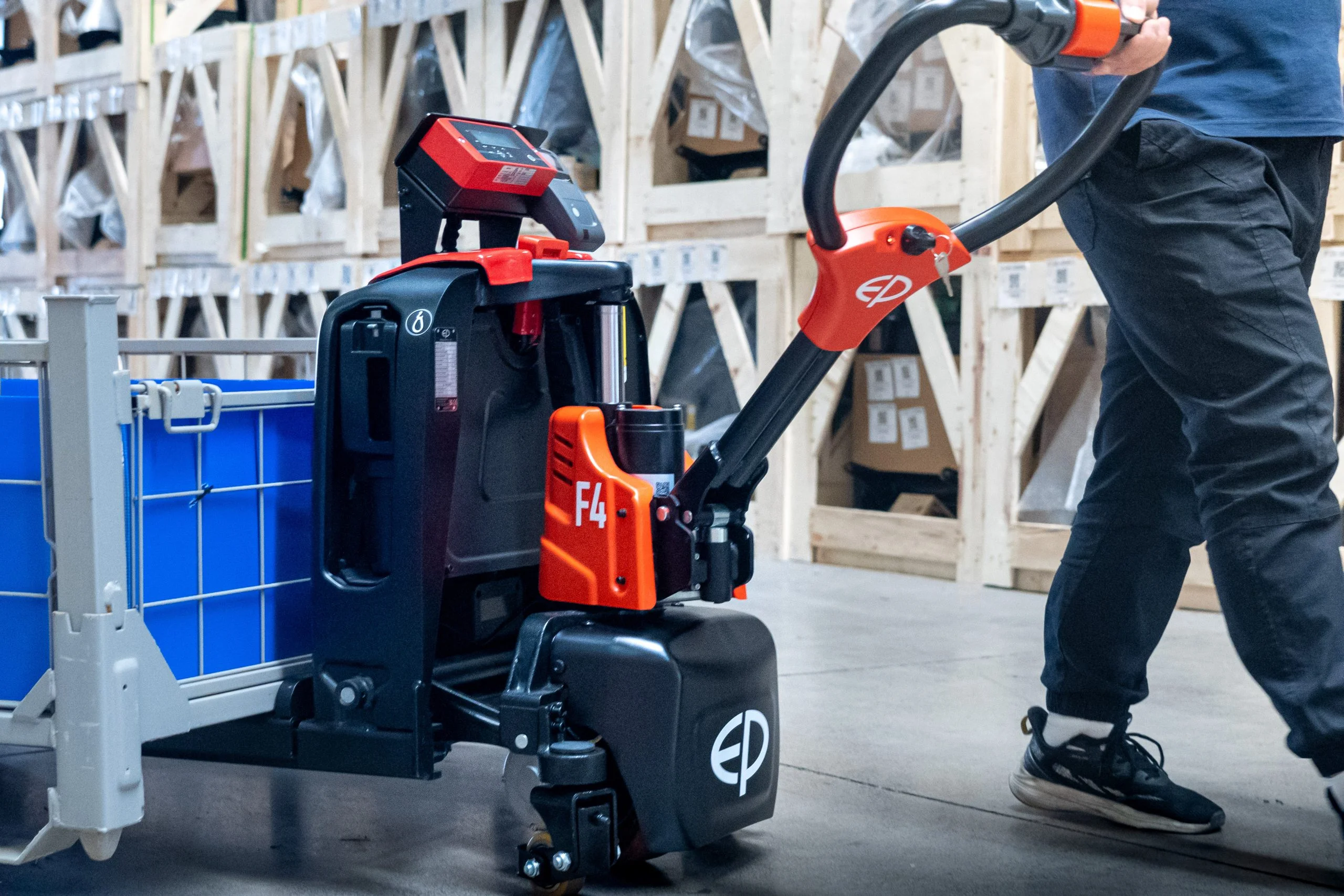 EP F4 med våg är en full elektrisk pallyftare på 1500 kg kapacitet, utrustad med litiumbatteri, stödhjul och inbyggd våg. Den klarar både lastning och viktkontroll i ett steg, vilket sparar tid och förbättrar noggrannheten i lagerhanteringen.
