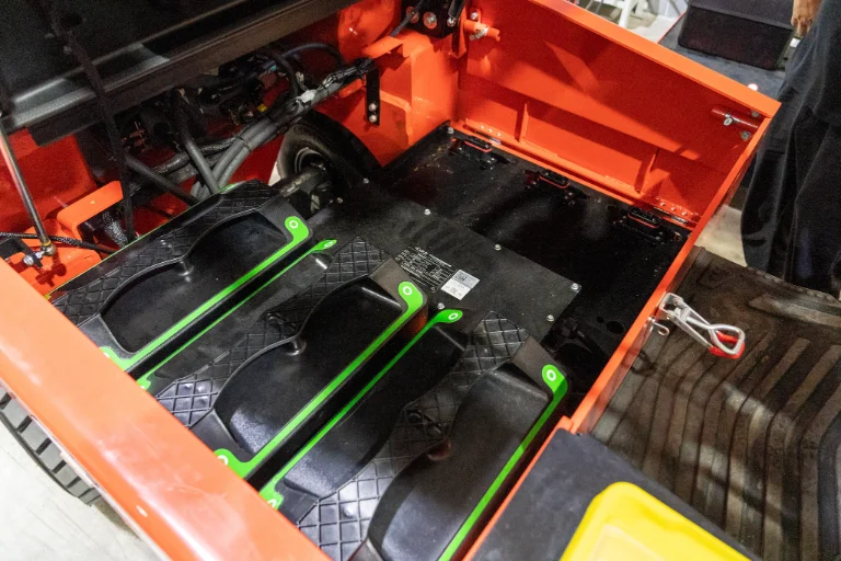 Detta gör trucken unik – istället för att vänta på laddning byter du batteri och kör vidare.
