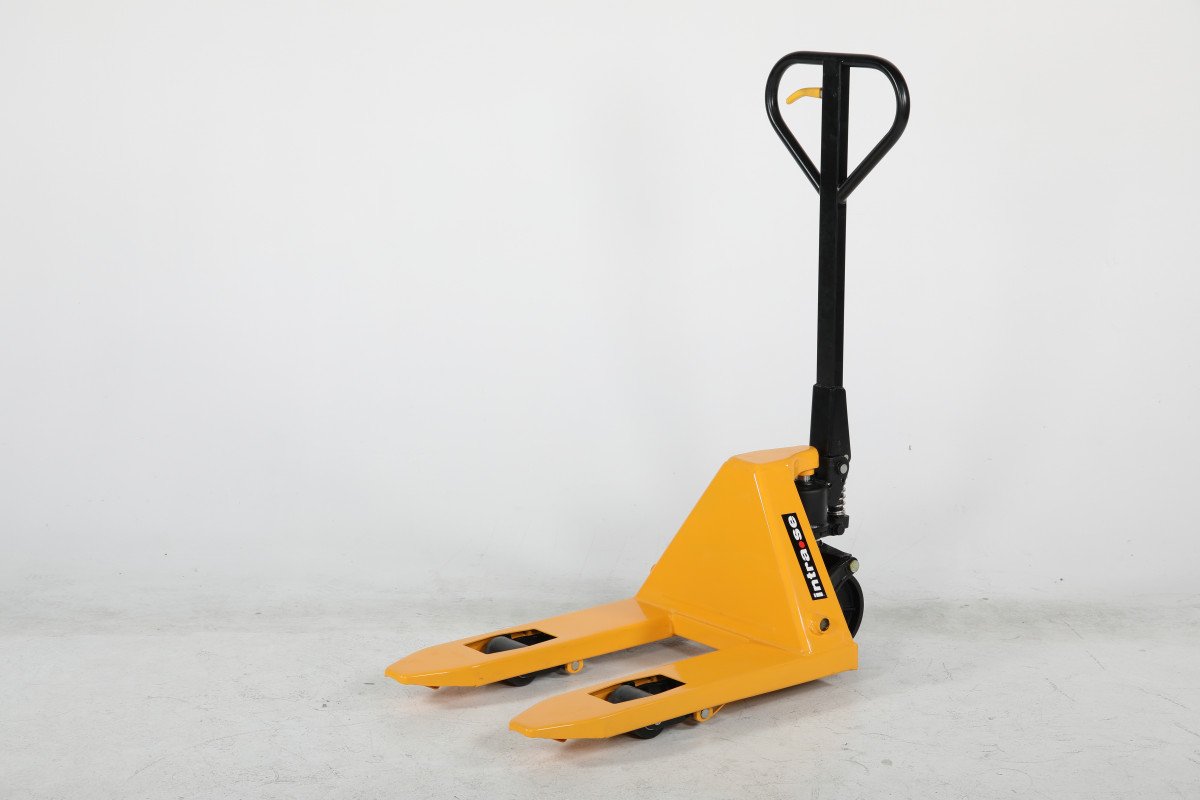 En stark palldragare med kapacitet 2500 kg och gaffelmått 540×650 mm. Tack vare den korta gaffeln är den perfekt i riktigt trånga utrymmen, lastbilar och butiker. Med singel/polyhjul rullar den tyst, smidigt och skonsamt mot golv – även över mindre ojämnheter.